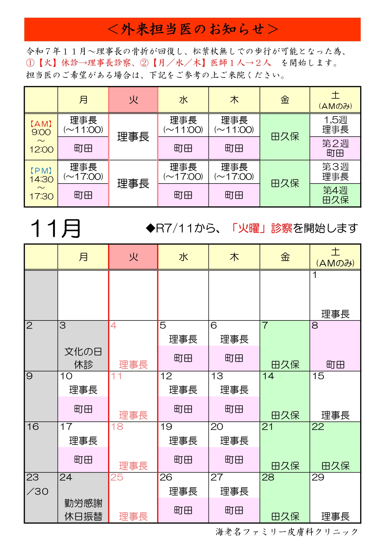 (再)【令和7年11月】診療担当医表